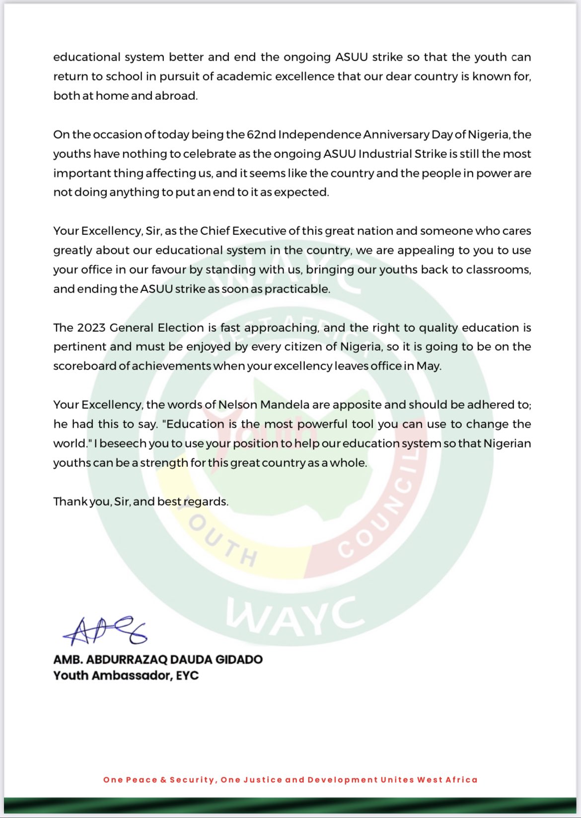 Gidado On Twitter Kindly Rt Open Letter To President Muhammadu Buhari Mbuhari Appeal To End Asuu Strike Asuustrike As We Mark Our 62nd Independence Anniversary Today Https T Co Bvf55fhdx4 Twitter