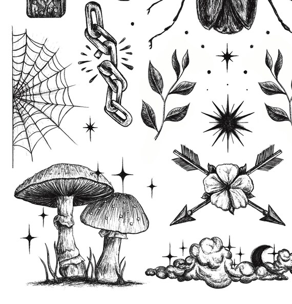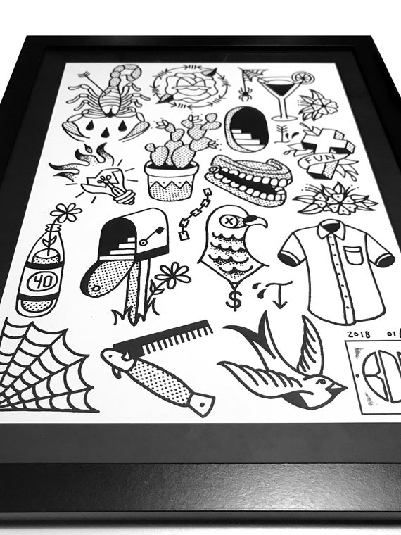 Tattoo Flash Sheet 12x16 Hand Drawn Digitally Etsy Canada
